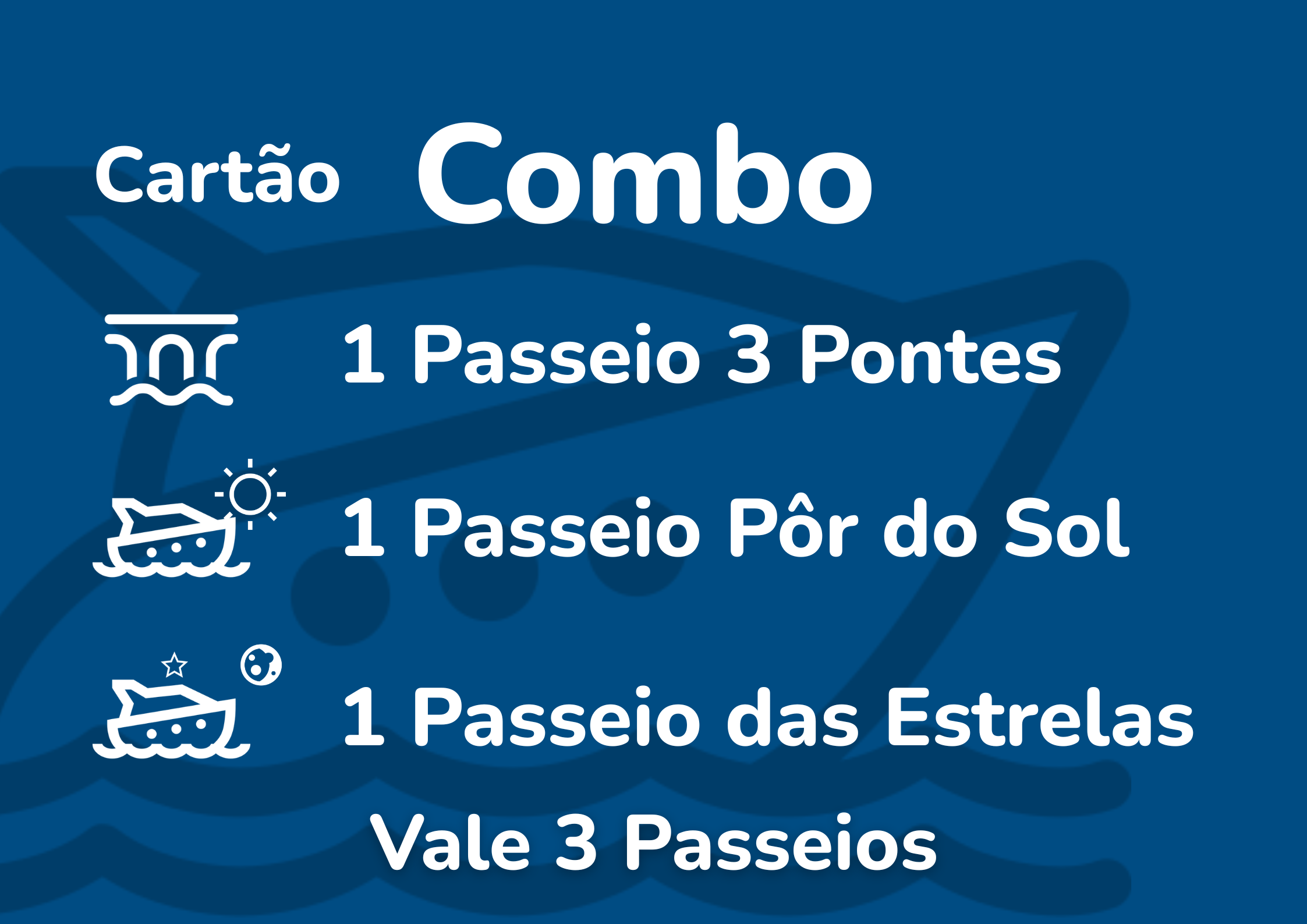 A cada reserva, aplique o cupão COMBO no tour correspondente.